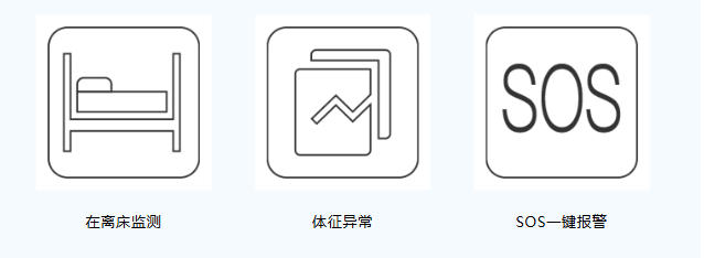 远程监护、体征异常提醒、在离床状态提醒:当突发紧急情况时,家属随时可以通过 APP 远程查看家人体征状况,及时处理。